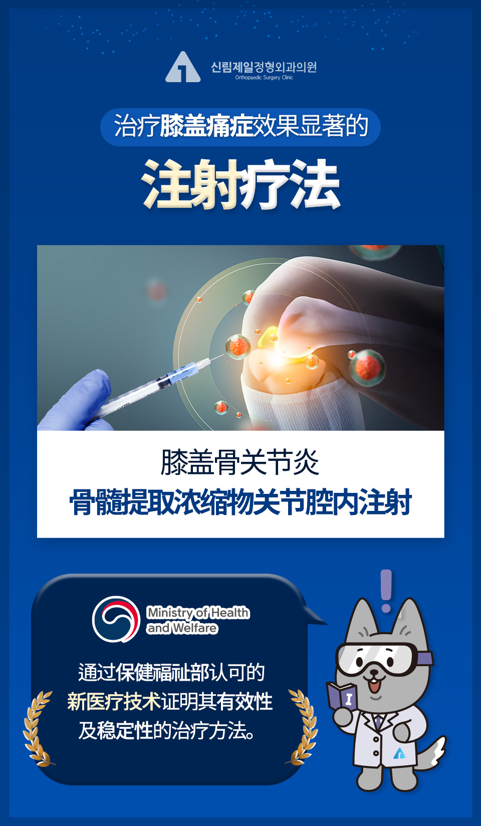 帮助您告别慢性膝关节疼痛。如果您正在寻找可替代手术的治疗方案,干细胞疗法将是一个理想的选择。该方法通过使用患者自体骨髓干细胞,有效恢复膝关节功能。 可在治疗后3个月至1年内,膝关节软骨有望逐步再生,并可在数周内显著缓解疼痛。 膝关节干细胞治疗是一种经韩国法律认证的合法新型疗法,特别推荐给那些无法通过常规治疗获得效果且不希望接受手术的患者。干细胞疗法可以作为手术前的重要尝试,是最大程度的非手术治疗选择。治疗全程采用局部麻醉,仅需1小时即可完成。